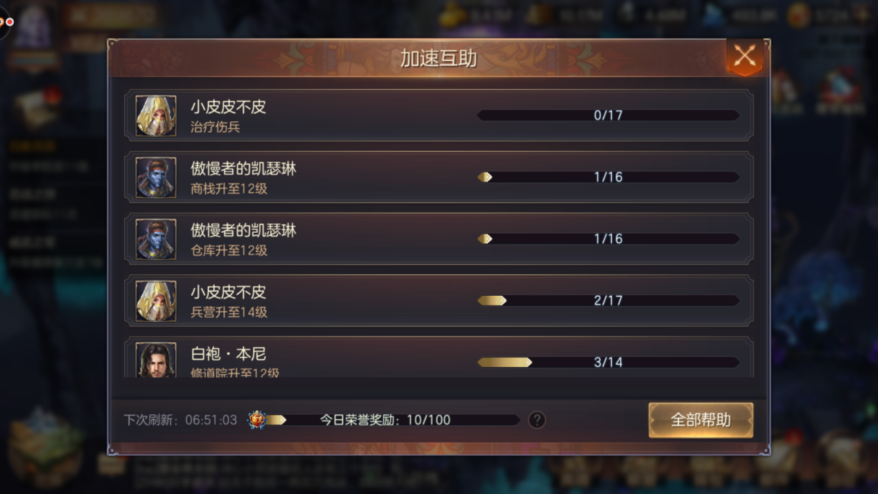 首先,联盟成员之间的互助可以加快建筑升级的时间。在人多的时候让大家帮忙加速可以节省大量的建筑升级时间,再配合使用加速道具,可以实现事半功倍的效果。