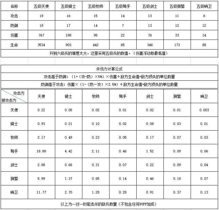 以下为圣堂种族五级兵种内战的伤害公示表(仅供参考)