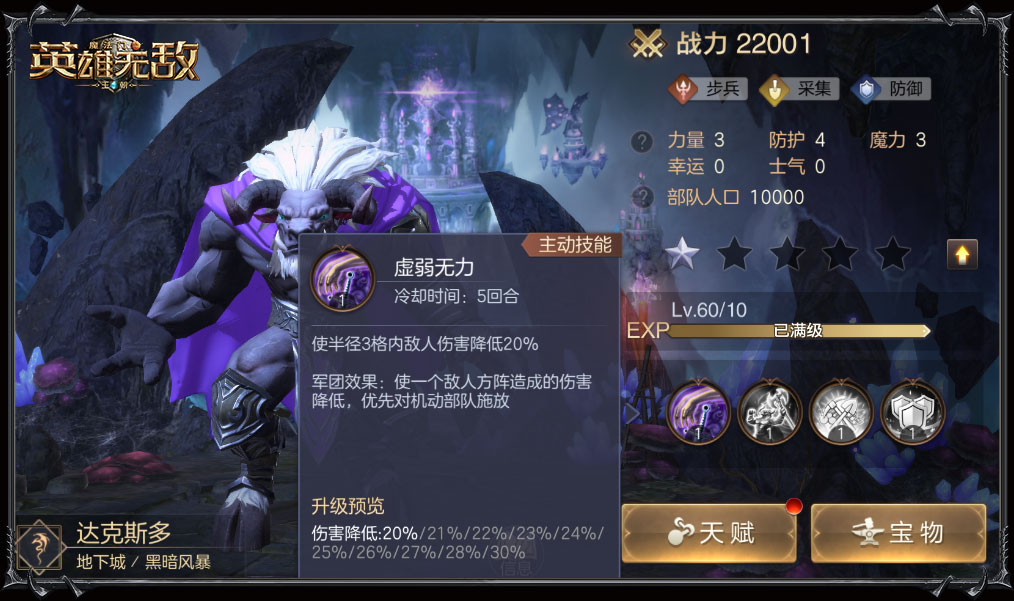 远程和机动表现都不错的地下城,是几个种族中的热门选手,拥有了军团效果后,各主力英雄更可以拥有针对性的伤害效果。如约格可使所有己方造成的伤害增加、西尼塔优先对敌方重装单位造成伤害、兰勒斯优先对敌方远程方阵造成伤害……大地图坦克军,其他英雄还有哪些惊喜,各位领主可逐一了解。