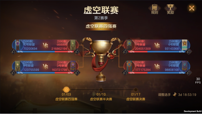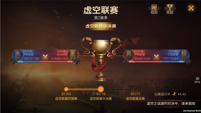 11月版本中“虚空之战”跨服挑战将新增“虚空联赛”模式和大家见面。新的玩法,新的挑战!在前几届虚空之战中因为规则不熟、战队磨合不足、生产加速物资储备缺失等客观原因导致在跨服联盟战中失利的领主们,抓紧时间收集和储备物资,强化自身的同时加强盟内协调和调度的配合,期待领主们在虚空联赛中大展拳脚!